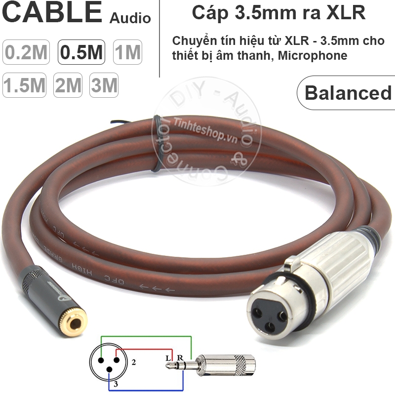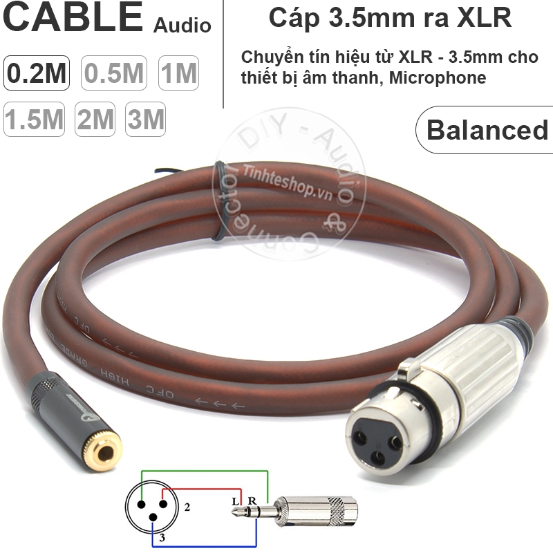 Tag: 3.5ly ra XLR balanced, 3.5mm to XLR female balanced, Dây 3 ly ra XLR, Cáp 3.5 ly sang canon XLR balanced, 3.5mm to cannon XLR balanced
