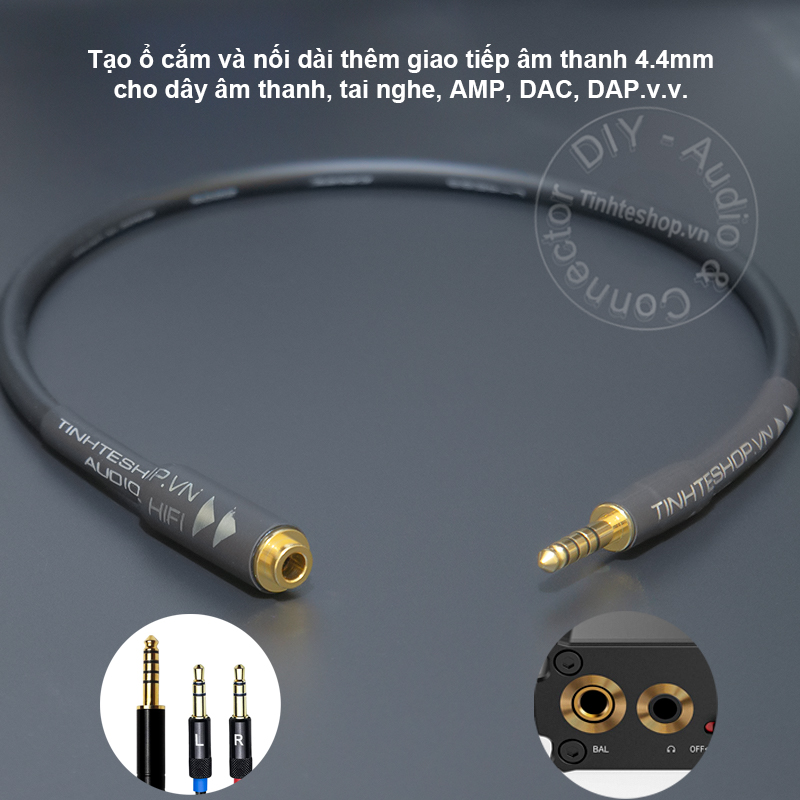 - Tạo ổ cắm và nối dài thêm giao tiếp âm thanh 4.4mm cho tai nghe, DAC, AMP, DAP.