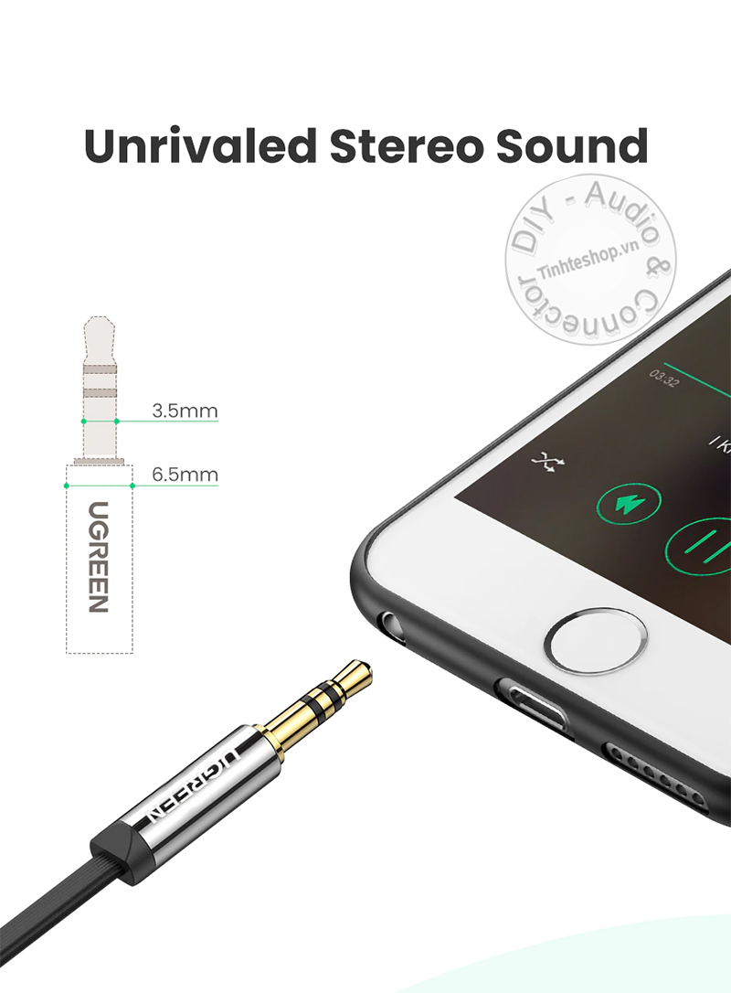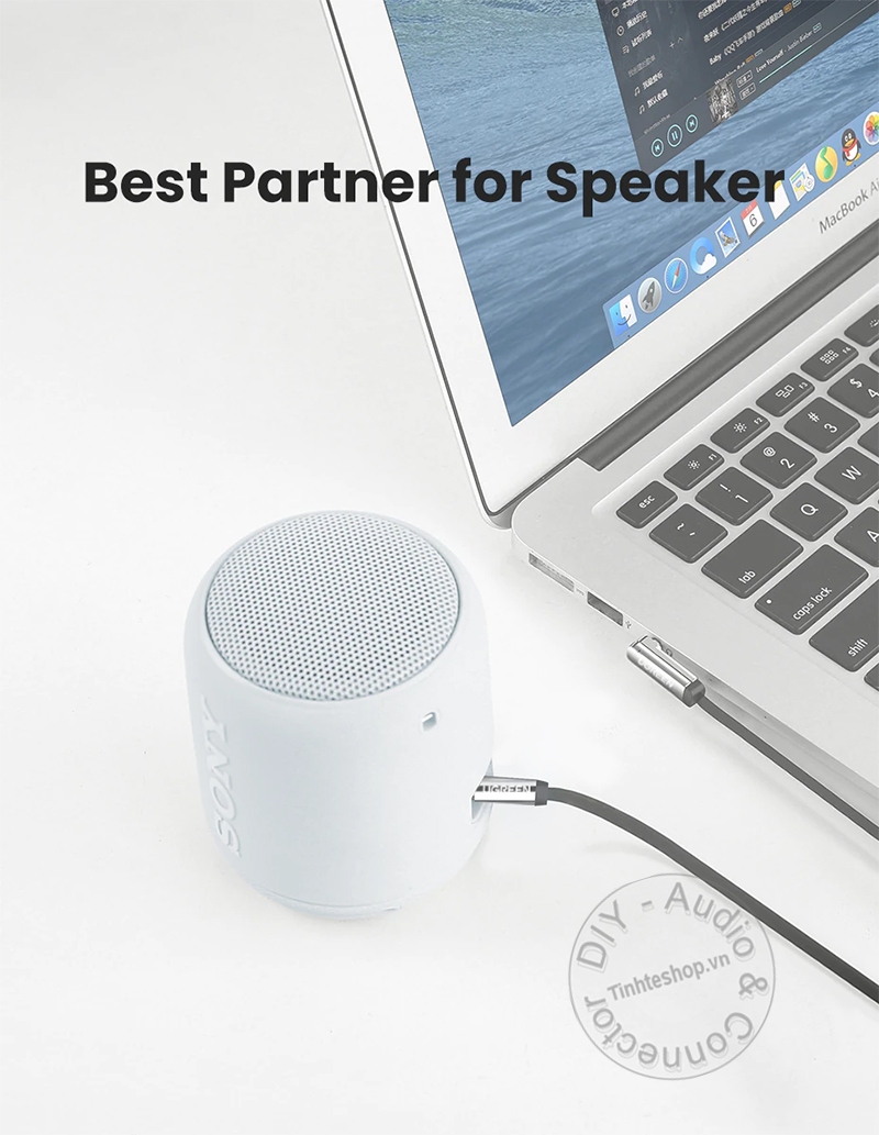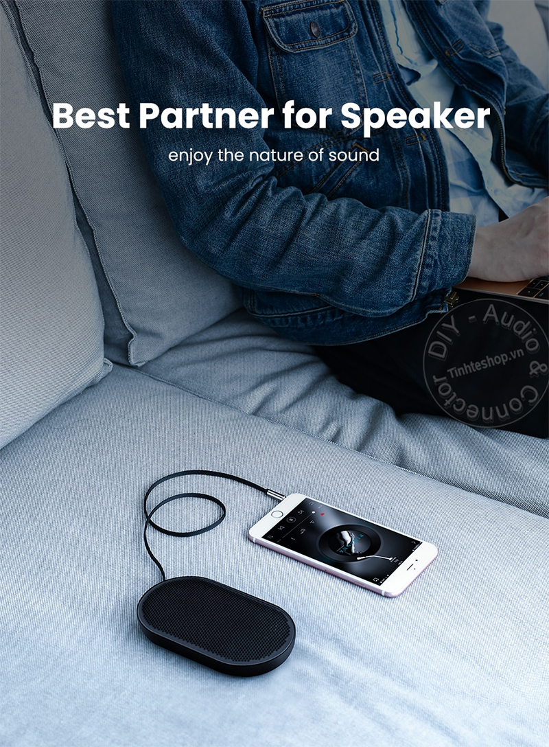 - Giao tiếp với Cáp 2 đầu 3.5 stereo, thiết kết hoàn toàn tối giản, dây mỏng mẹt mềm mại, linh hoạt và đàn hồi. Jack cắm 3.5mm mạ vàng 24K và bao bọc bên ngoài nhỏ, vừa vặn với nhiều thiết bị di động.
