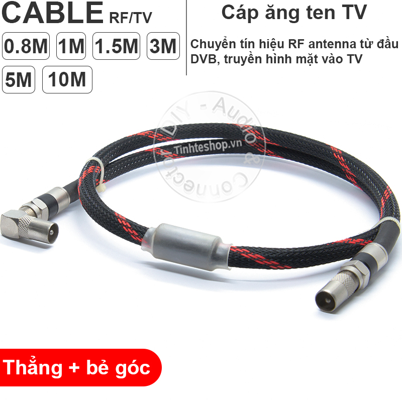 Cáp anten DVB T2 được sử dụng để chuyển tín hiệu từ Đầu thu DVB sang TV hoặc từ truyền hình mặt đất kéo về đi âm tường rồi cắm vào TV. Dây anten TV này được thiết kế với 1 đầu vuông góc rất thuận tiện khi cắm phía sau TV, nơi hẹp và cần định hướng ngoài ra thì bạn có thể tháo jack anten để thay thế sang thẳng hoặc các dạng cắm khác.