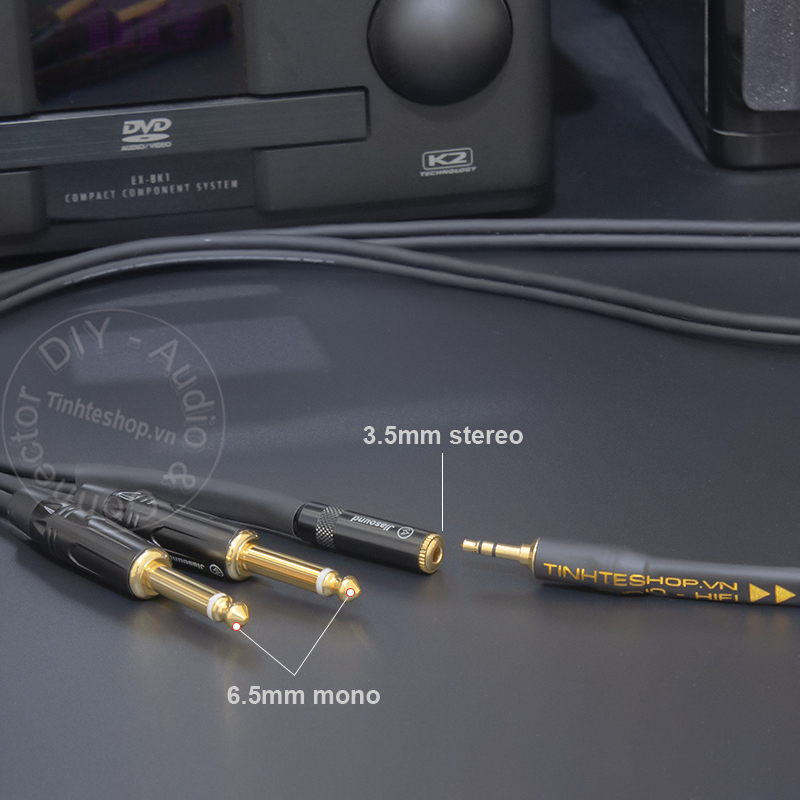 - - Chuyển 2 chiều tín hiệu từ 3.5mm ra 2 đầu 6 ly mono hoặc gộp 2 đầu 6ly mono sang 3,5mm stereo.