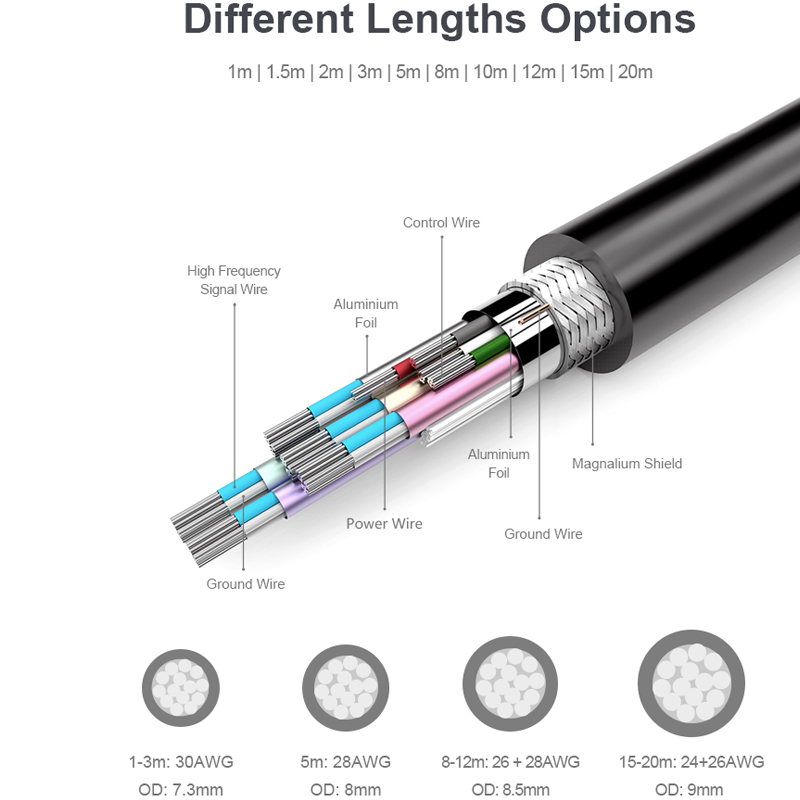 - - Độ phân giải hỗ trợ: 4K@60Hz (áp dụng cho chiều dài từ 3 mét trở xuống), ngoài ra từ 5 mét trở lên chỉ hỗ trợ là 4K@30Hz, hỗ trợ 3D, và các định dạng độ phân giải HD thấp hơn như 1080P, 720P.v.v.