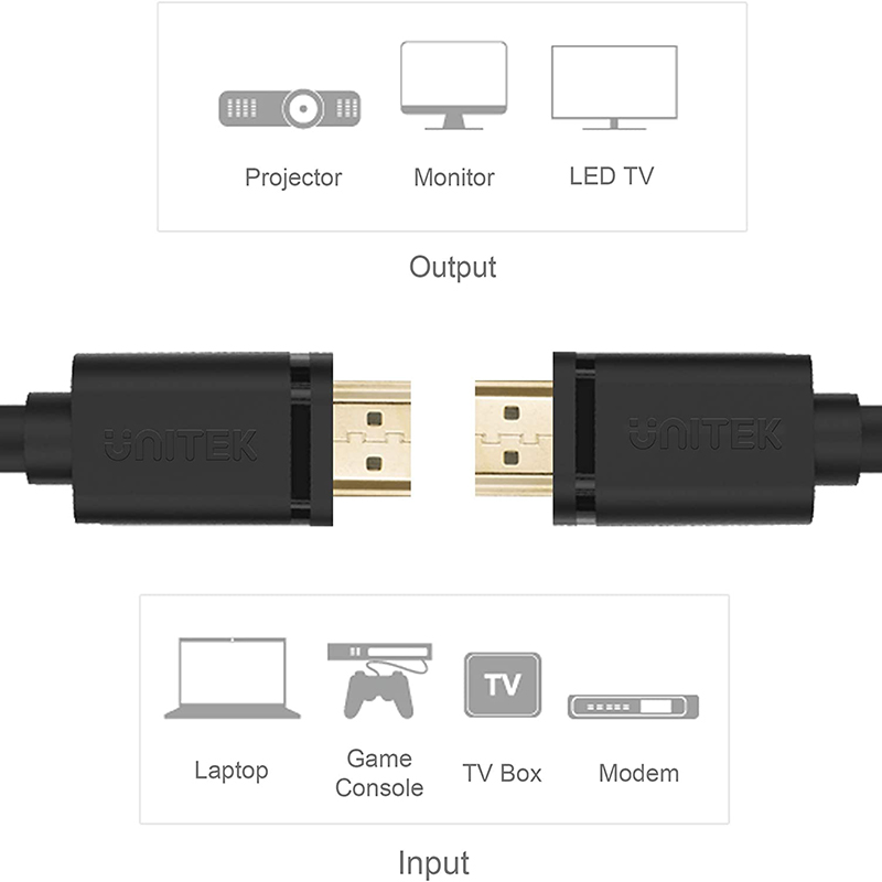 - Cáp HDMI V2.0 4K Unitek. Hỗ trợ đầy đủ cho các tính năng truyền dẫn HDMI cho các thiết bị có cùng giao tiếp và các phiên bản HDMI 1.3, 1.4 và 2.0.