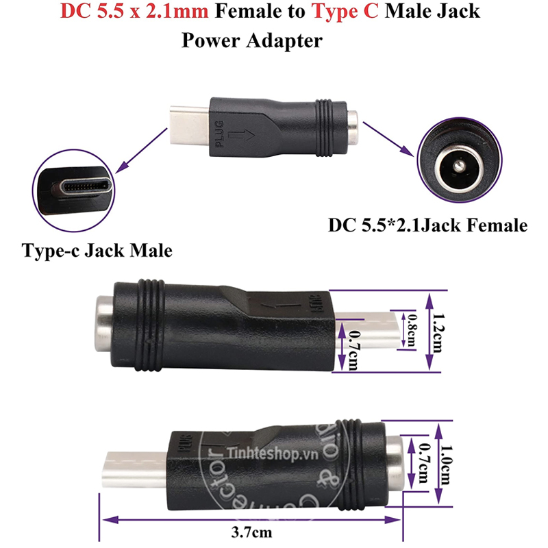 Tag: Jack chuyển nguồn chân tròn sang type C, 5.5*2.1mm sang type-C, Đầu đổi điện chân tròn 5.5x2.1 ra USB-C, Rắc nguồn 5.5x2.1mm trân tròn ra type C
