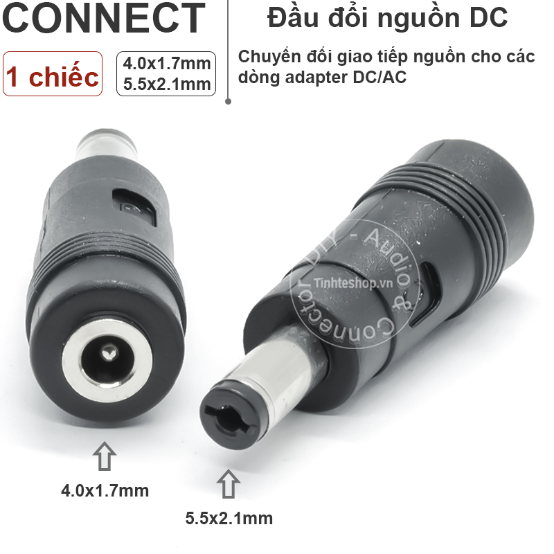 - - Đóng gói: 01 chiếc Đầu chuyển nguồn DC 4.0x1.7mm ra 5.5x2.1mm, túi đóng gói sản phẩm
