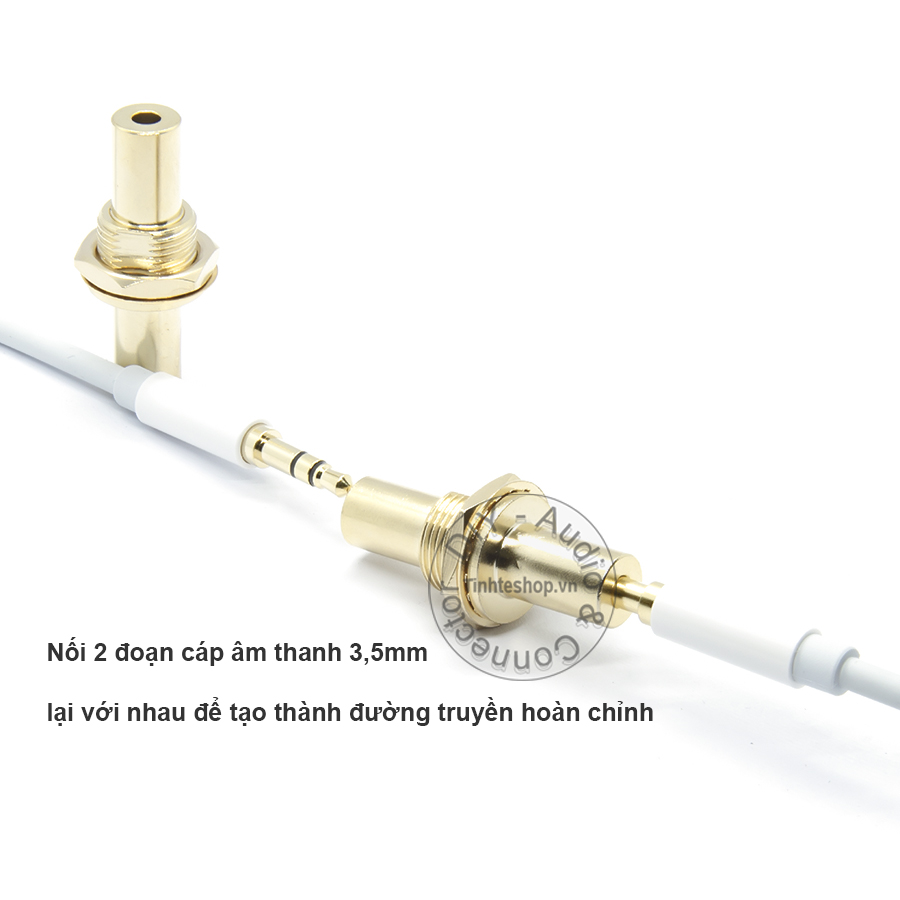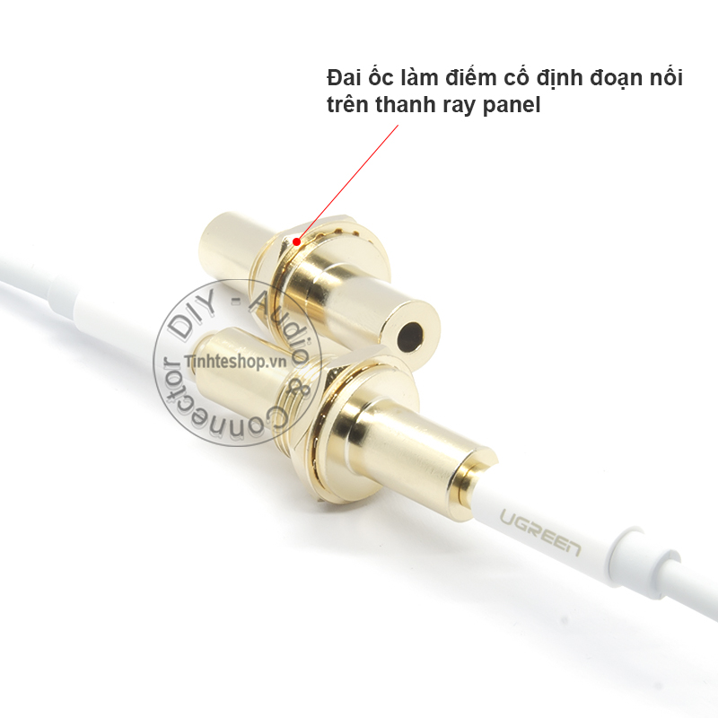 - Ứng dụng: Nối tiếp đầu giao tiếp, cáp audio 3.5mm lại với nhau để tạo thành 1 sợi dây hoàn tiếp nối tín hiệu hoàn chỉnh, có đai ốc để cố định vị trí thành ổ cắm trên thanh ray.