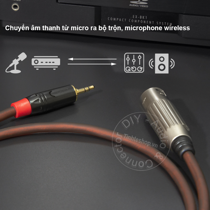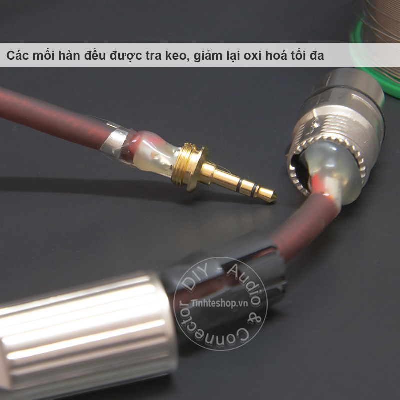 - Cáp XLR ra 3.5ly unbalanced được chúng tôi DIY từ 0.5 mét đến 5 mét, chất lượng lõi sợi và jack cắm đáp ứng được nhu cầu.