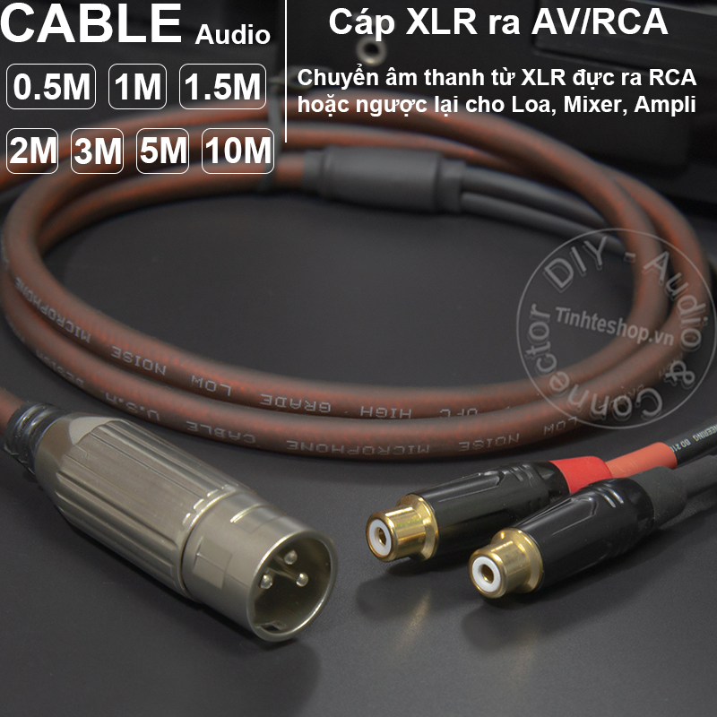- Dây Canon đực ra 2AV được chúng tôi DIY, lõi sợi đồng OFC 4N, jack AV và XLR mạ vàng hoặc mạ nickel đảm bảo tín hiệu. Thiếc hàn tinh khiết, thành phần có đồng + bạc, mối hàn được che chắn để giảm oxi hoá tối đa.