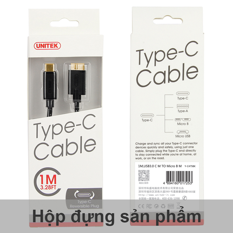 - Cáp USB cho ổ cứng di động Unitek Y-C475BK có chiều dài 1 mét, tương thích dễ dàng cắm và sử dụng cho các thiết bị có cùng giao tiếp.