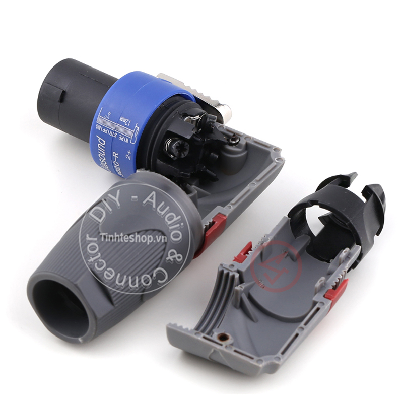 - Các lắp đặt của Giắc loa speakon này rất đơn giản, cố định bằng những ốc vít, phù hợp với nhiều loại kích thước dây từ 7mm đến 14mm và các kích thước lõi như 0.75mm đến 2.5mm.