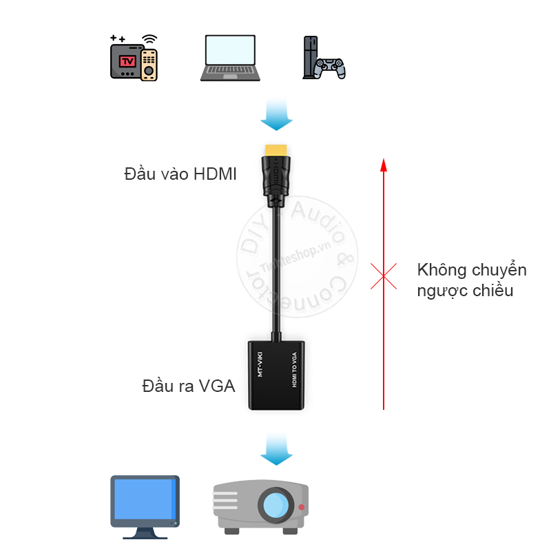 - - Lưu ý: Không thể chuyển ngược lại từ VGA ra HDMI