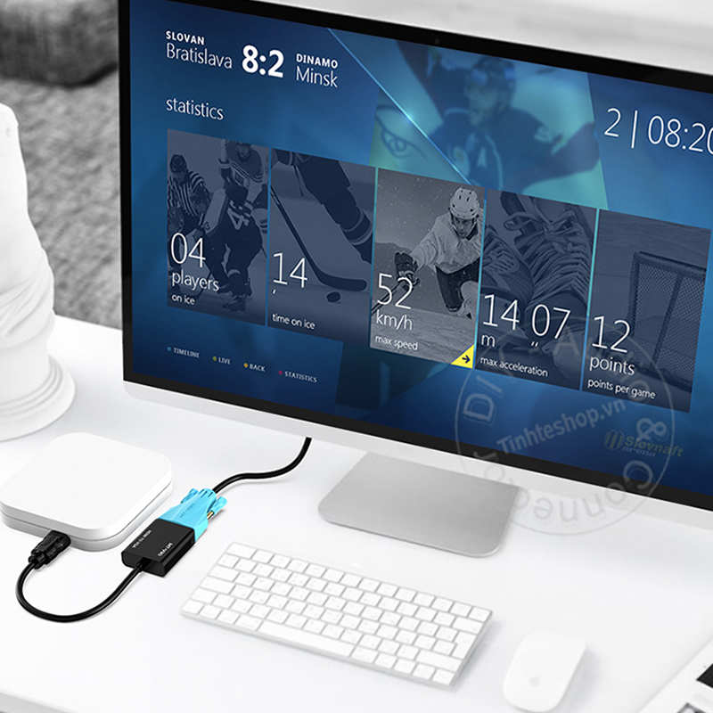 - Chuyển đổi 1 chiều từ HD sang VGA, chiều chuyển sẽ từ HDMI trên Laptop, PC, Tv box, DVD, PS4.v.v. ra VGA của màn hình, hoặc máy chiếu.