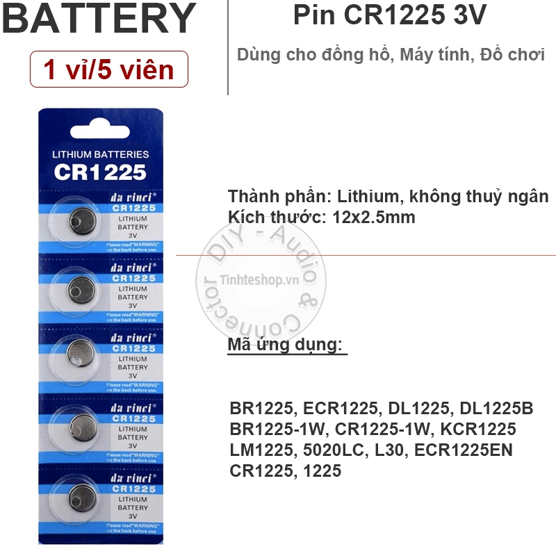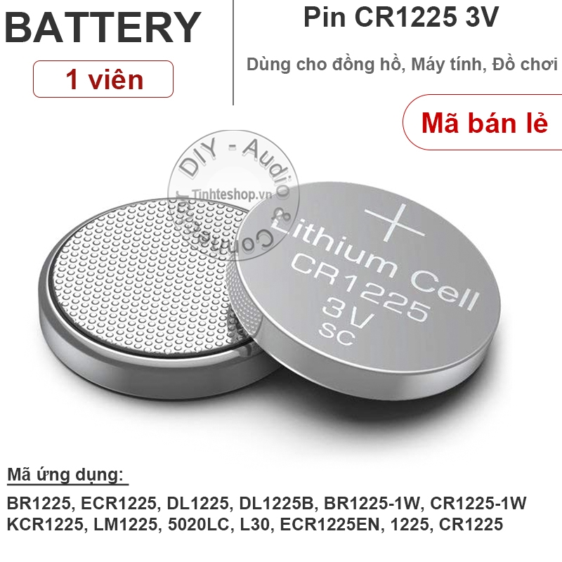- Mã ứng dụng của Pin lithium CR1225 này rất đa dạng, nếu Khách hàng quan sát thấy mã trên viên pin cũ có những mã này: CR1225, DL1225, 6225, E-CR1225, 5020LC, 5020LB, BR1225 thì có nghĩa chúng là một và dùng chung.