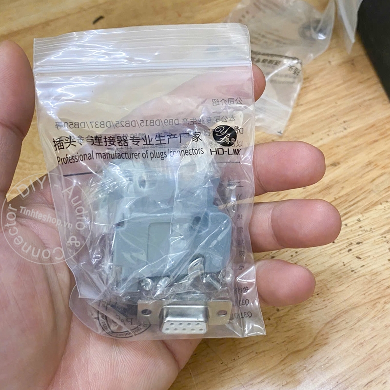 Jack DB9 mạ vàng kèm nắp nhựa được sử dụng để người dùng có thể tự thay đổi, hàn đầu cắm dây RS232, hoặc những dạng chuyển đổi khác như USB sang COM, COM9 sang COM25.v.v.